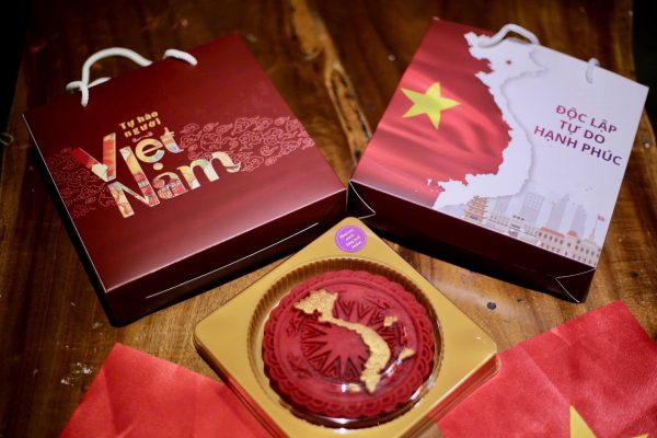 ? Thiết kế nổi bật với hình bản đồ Việt Nam trên nền đỏ rực rỡ, Bánh Yêu Nước không chỉ là một món ăn, mà còn là biểu tượng của lòng tự hào, gắn kết và yêu thương.