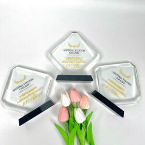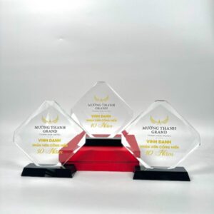 2. Chất Liệu Pha Lê K9 Cao Cấp: Chất liệu Pha Lê mang lại vẻ ngoài sang trọngminh bạch và quý phái, hoàn toàn xứng tầm với những thành tích xuất sắc cần được tôn vinh.